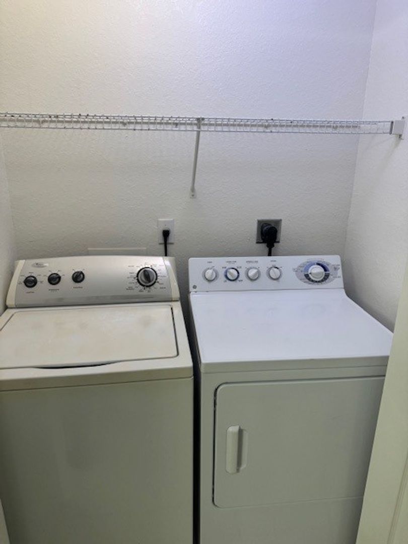 Third Floor condo with two bedrooms & two bathrooms, spacious living area and kitchen with a breakfast nook and separate breakfast bar. ~ Ashbury Floor plan-Common area tile, Bedrooms carpeted. Washer and dryer are included. Brand new HVAC system August 2025. New microwave 2025. The community is gated and offers a clubhouse with fitness center, pool & spa. Basic cable, water and trash are all included with the monthly rent ($). Exterior storage and covered parking. Application fee $100 per adult over 18 y/o, security deposit ($) . HOA Application fee $100.00 PER UNIT, background check $50 EACH ADULT and one-time trash fee $100. Apply online at www.mwfreyandson.com NO PETS